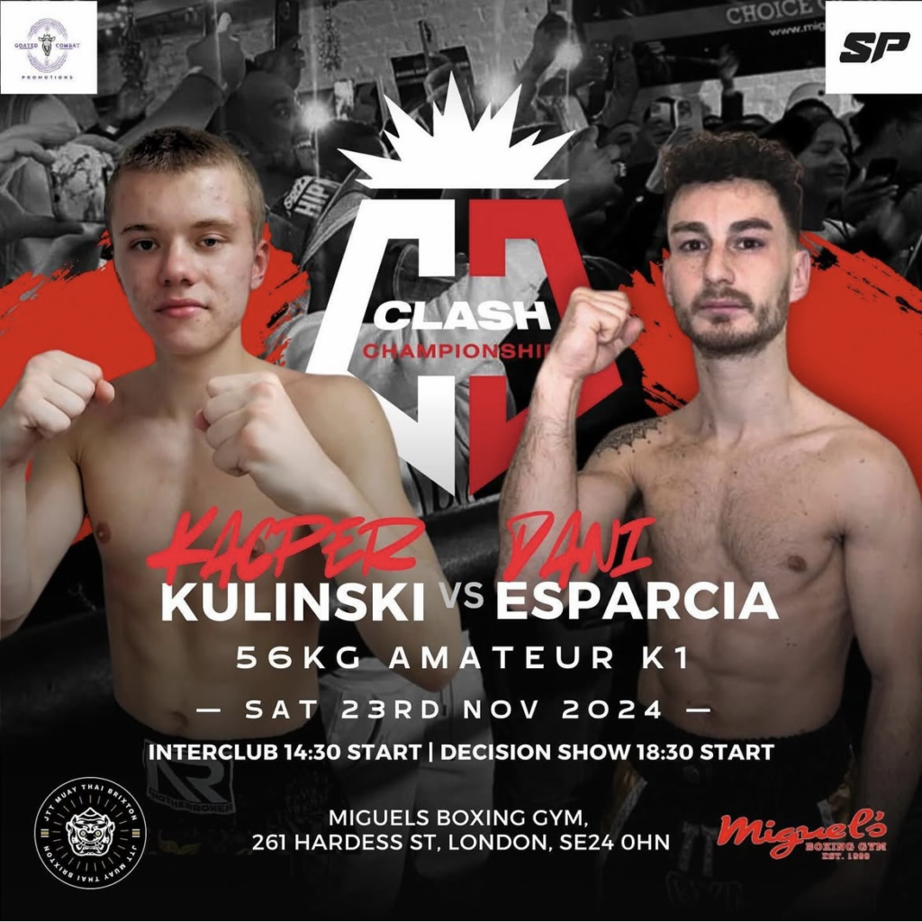Kacper Kulinski will face Dani Esparcia in a 56kg Amateur K1 ”Battle of South London” bout.